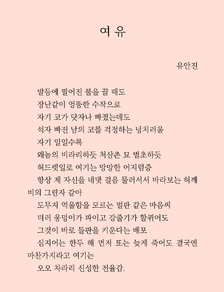 유안진 시인의 <여유> 시에선 다음의 구절이 마음에 와 닿았다.