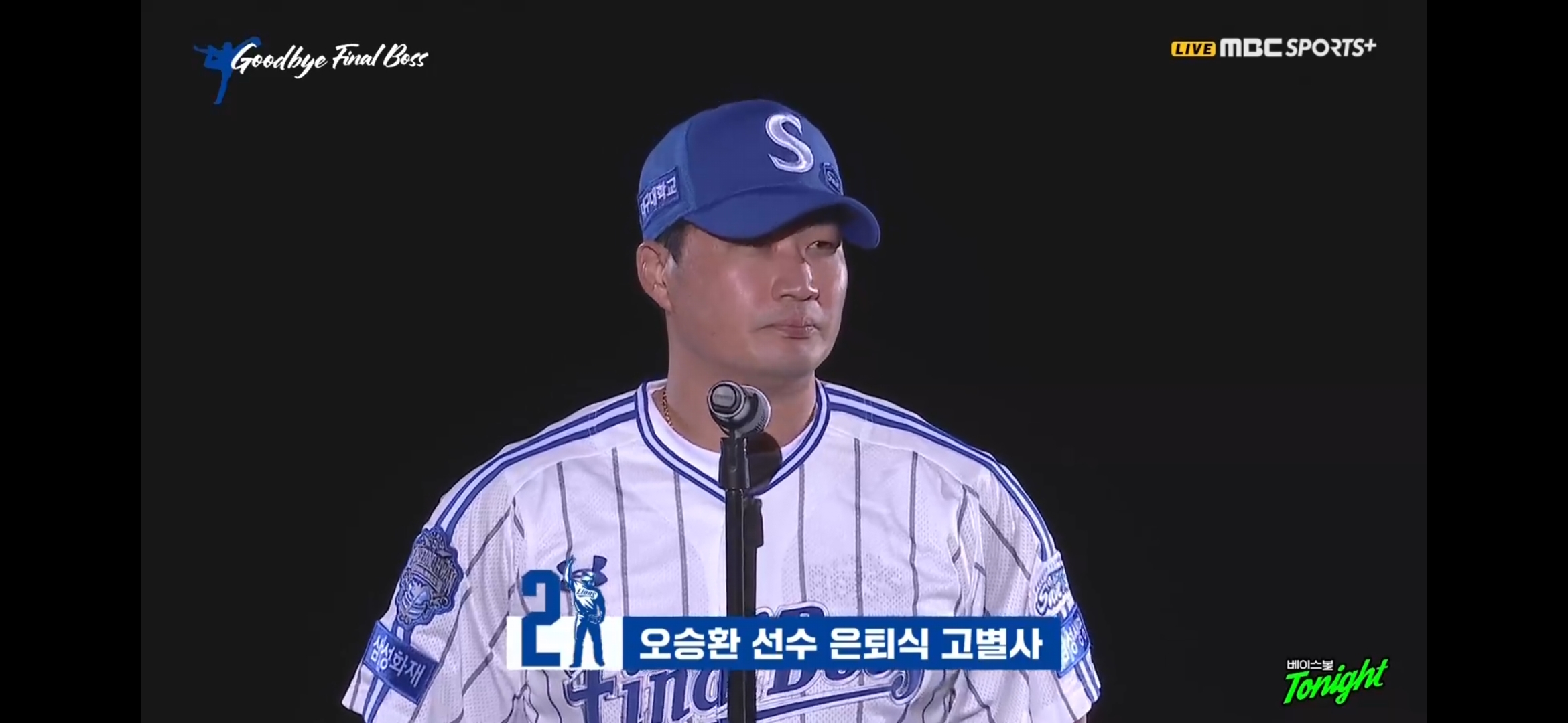 말이 별로 없던 오승환이 자신의 마지막 무대에서 고별사를 한다.